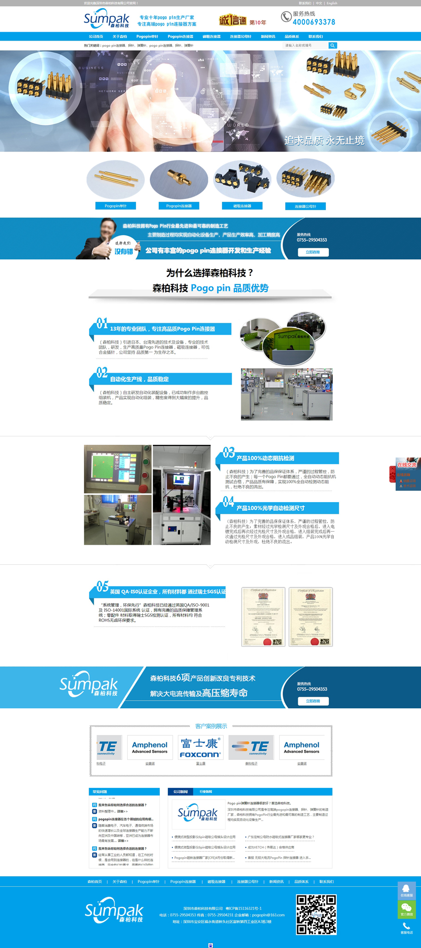 Project Description 深圳市森柏科技有限公司是专注高端pogo pin连接器、探针、弹簧针的制造厂家,森柏科技拥有Pogo Pin行业最先进和最可靠的制造工艺,主要制造过程均实现自动化设备生产,产品生产效率高,加工精度高,重要检测过程均采用自动化快速识别系统,大大降低了人为操作失误的风险,极大的提升了检测效率,工艺过程得到极大的改善和满足。因此产品质量和稳定性获得巨大突破。 Official website address 晋城http://www.zgsumpak.com I want to share